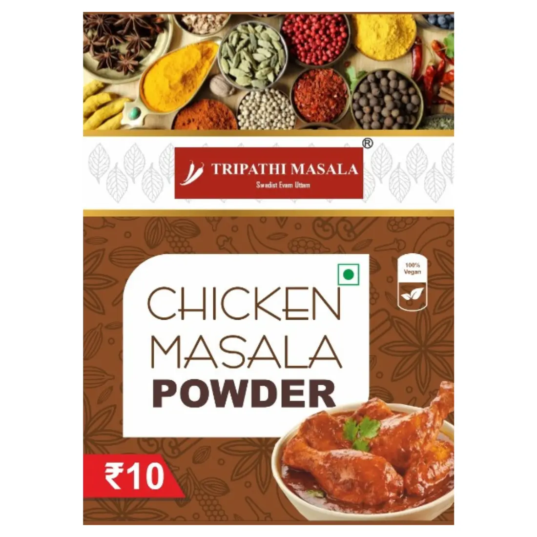 Tripathi Masala Chicken Masala is a traditional Indian spice blend crafted to elevate all types of chicken dishes, from classic homestyle chicken curry to restaurant-style gravies and dry preparations. Each spice is carefully sourced, cleaned, roasted, and ground under strict quality control to preserve its natural aroma and flavour.