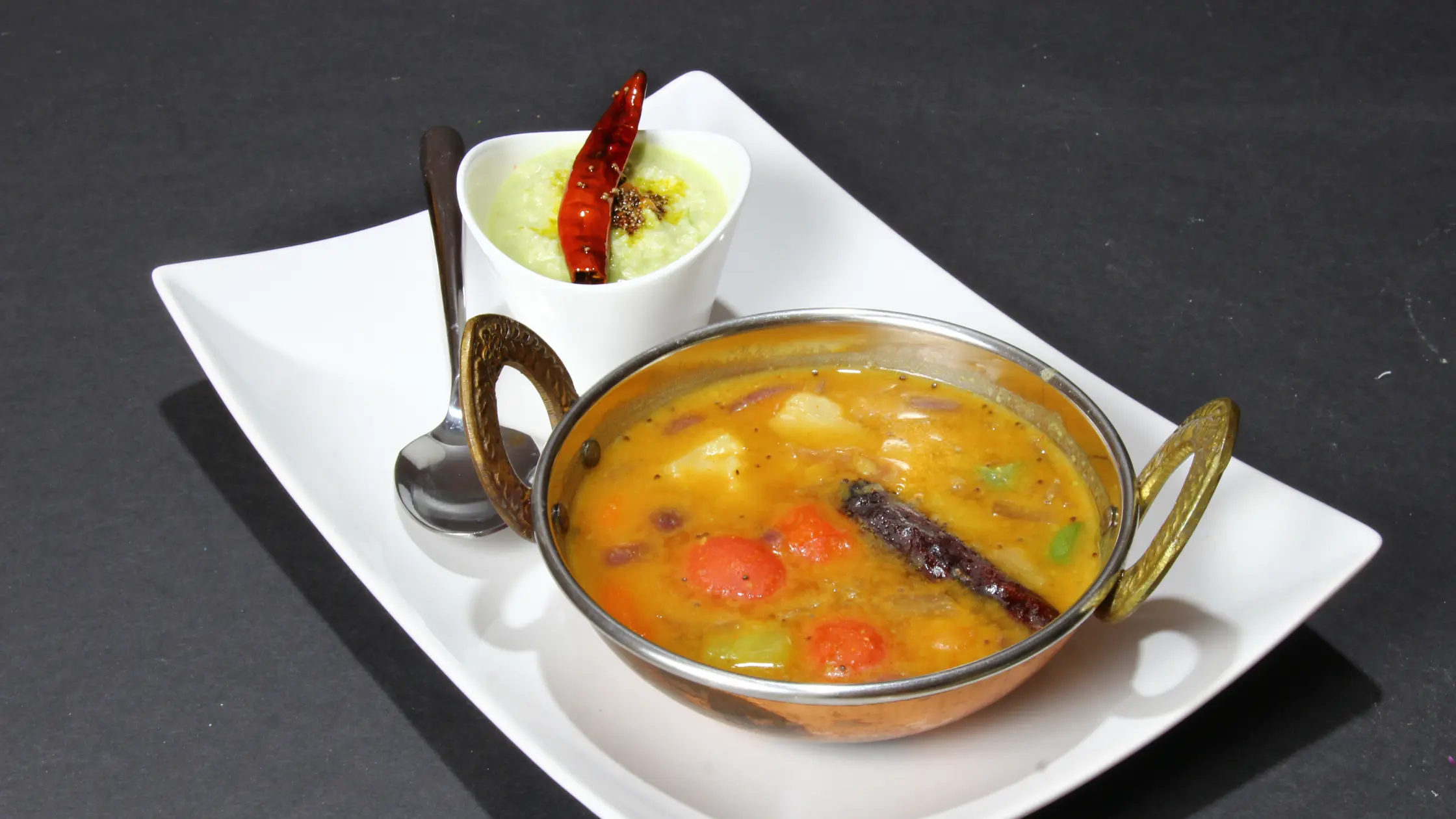 Sambar is a South Indian lentil and vegetable stew made with pigeon pea lentils, tamarind and a unique spice blend calle...