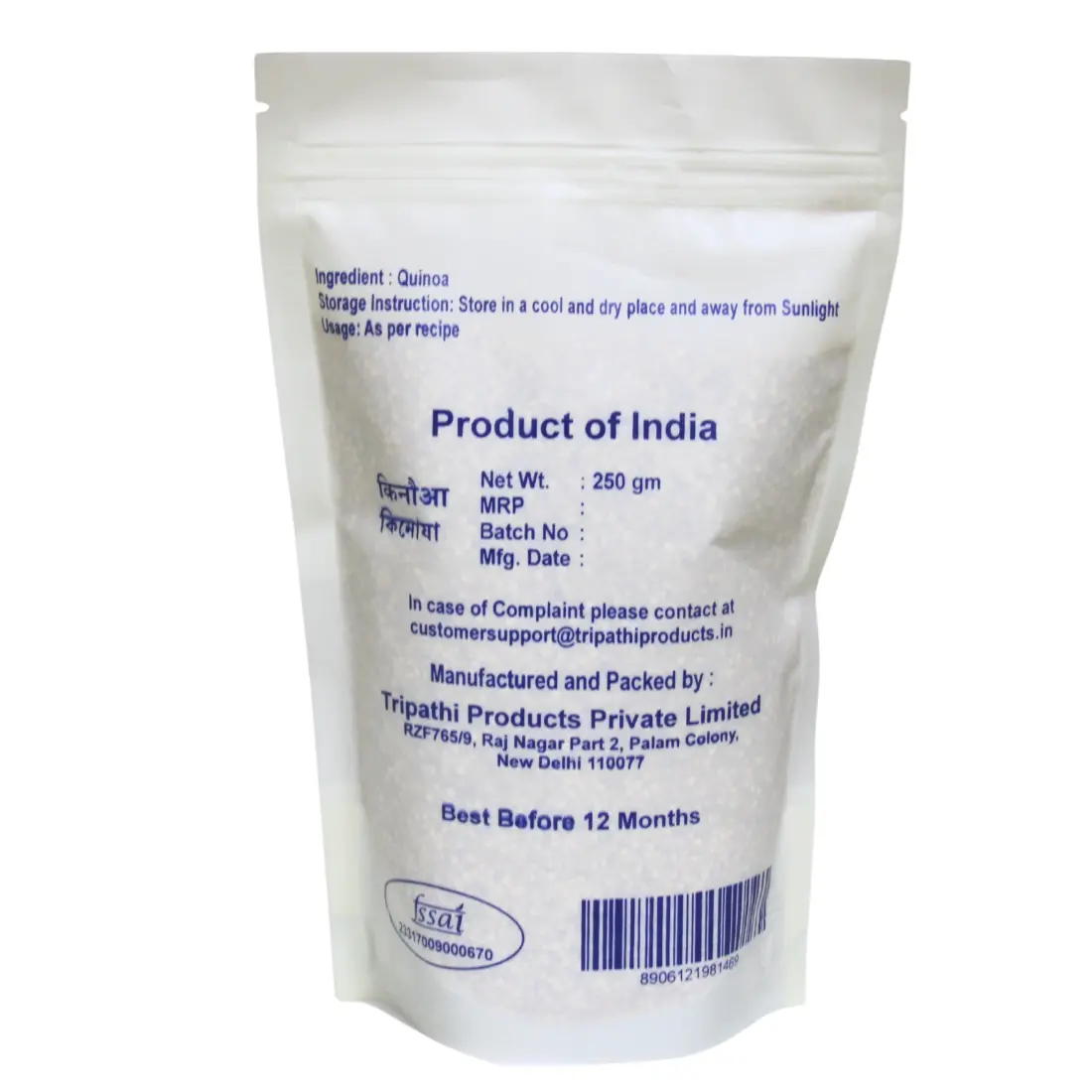 Quinoa is a highly nutritious super grain known for its high protein content and balanced amino acid profile. This Quinoa 250 gm pouch pack contains carefully selected whole quinoa seeds that cook fluffy and light, making them perfect for a variety of healthy dishes.
