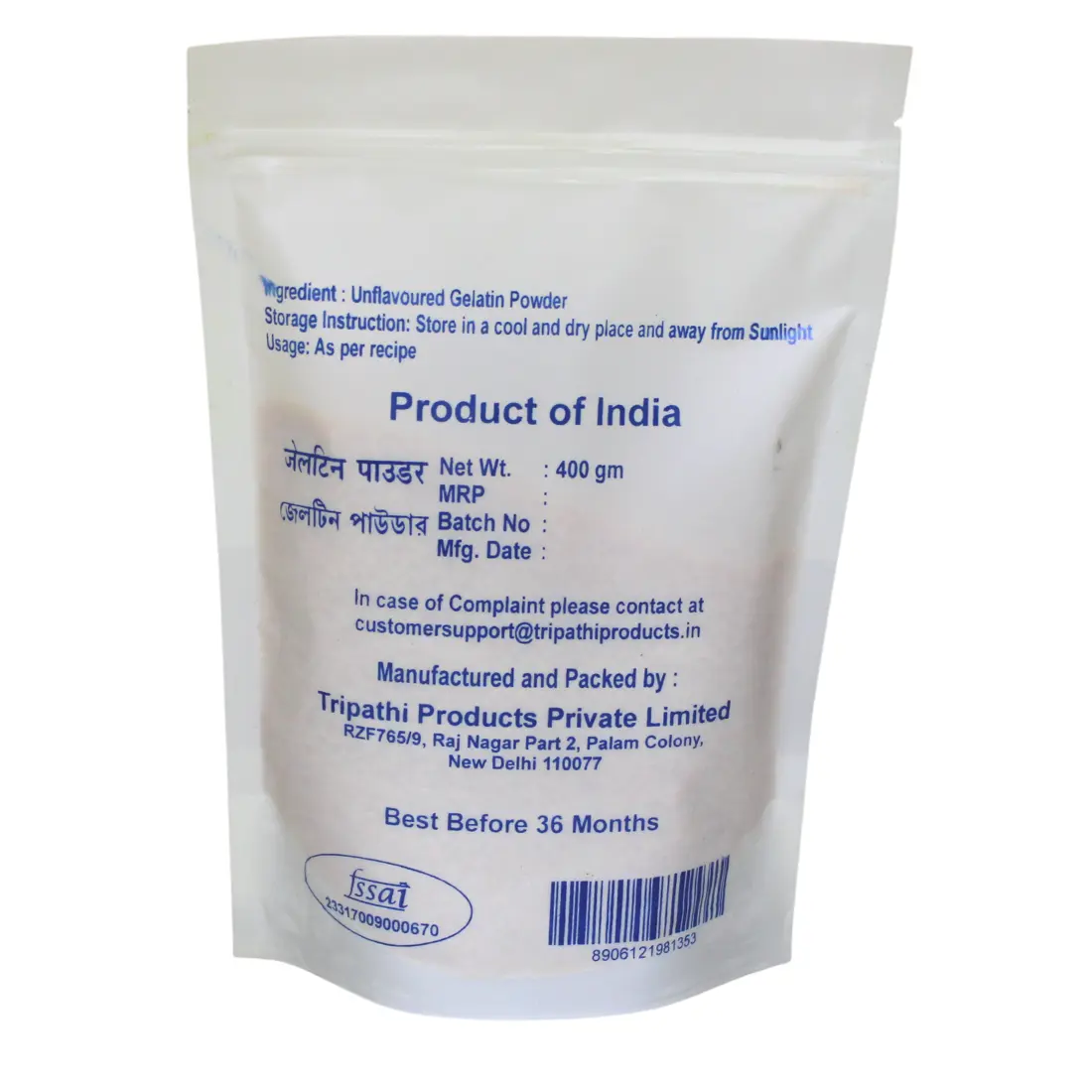 Pure Versatility: Whether you're a home cook or a professional chef, our Unflavoured Gelatin Powder 400gm is an indispensable tool in your kitchen arsenal. Its neutral taste and odorless nature make it a seamless addition to both sweet and savory dishes.